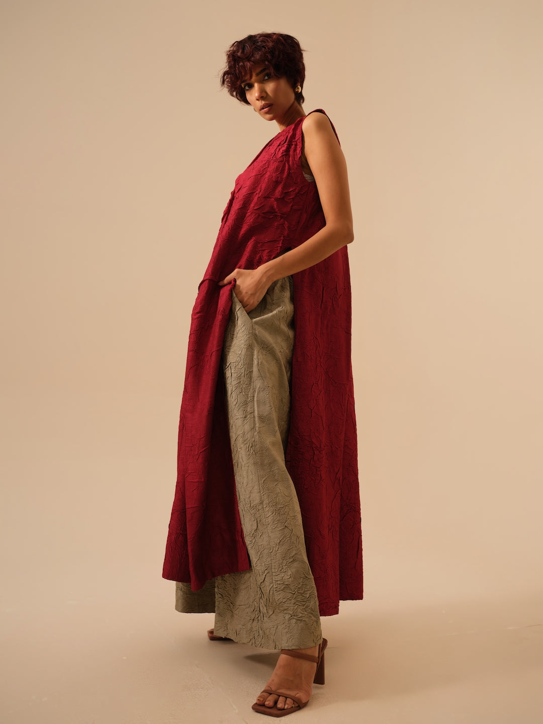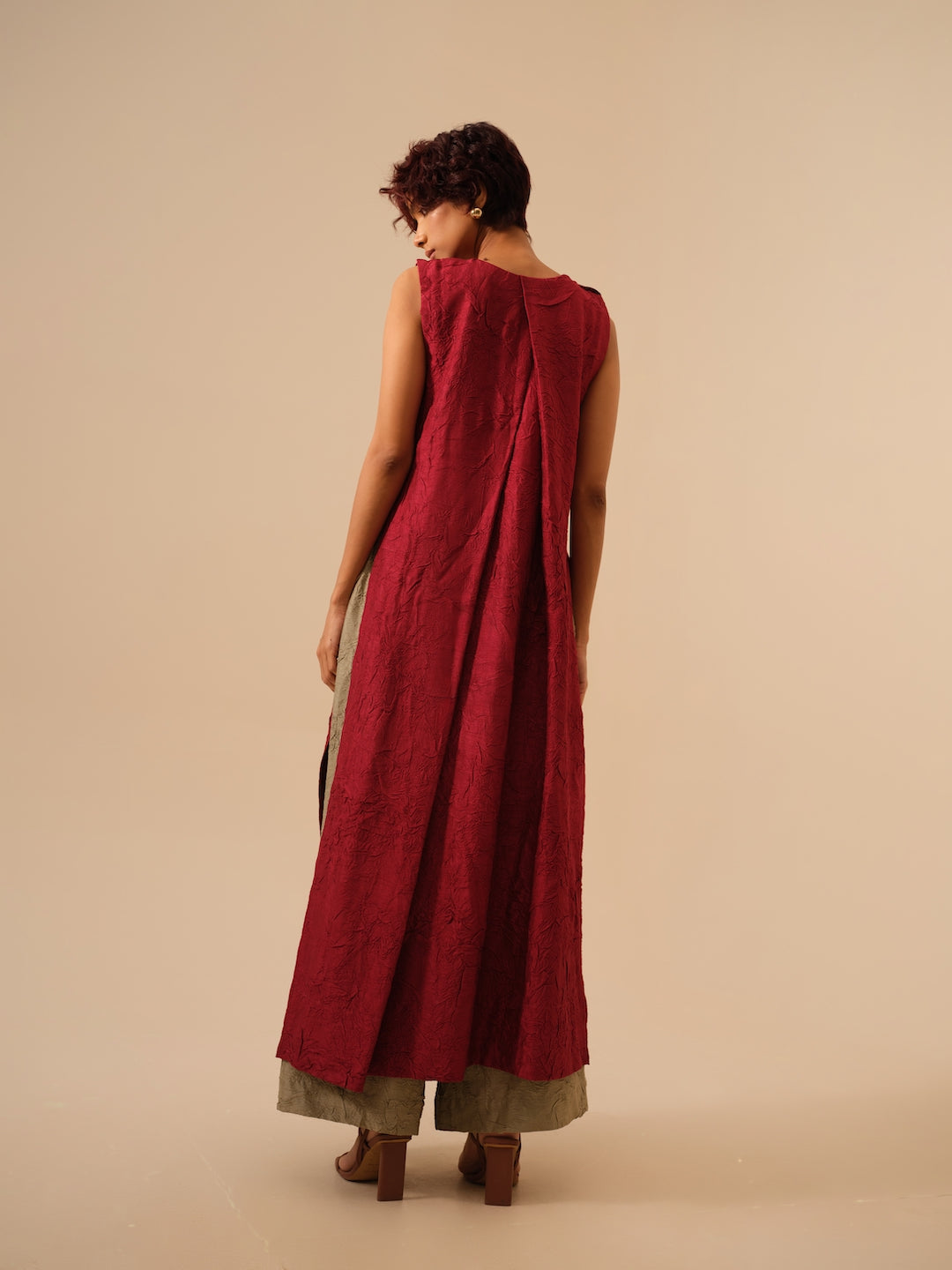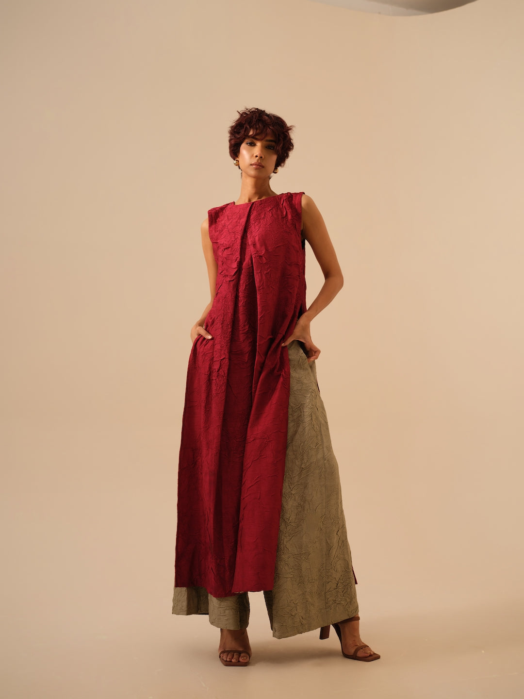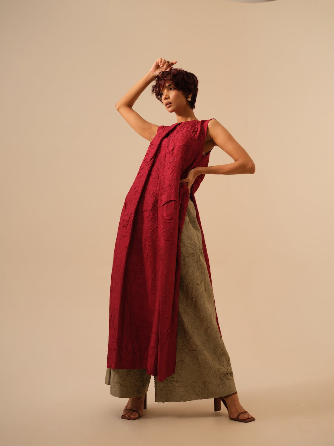 A relaxed, easy-to-wear long tunic that features an abstract drape and overlapping pleats, creating a subtle three-dimensional form. The fluid construction allows the fabric to move naturally with the body, blurring the line between structure and softness. A contemporary piece that reflects Stoïque’s sculptural approach to everyday elegance.