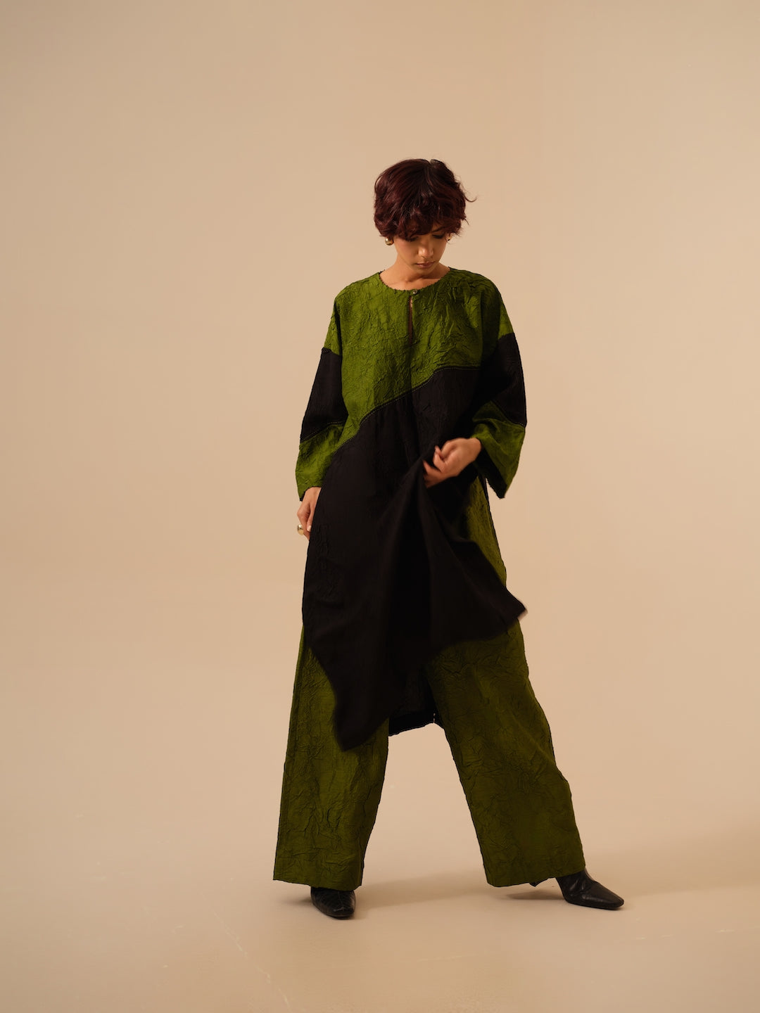 Relaxed trousers cut in our signature crushed silk — a fabric developed and perfected within the studio. Features side pockets and an elasticated waistband — soft, fluid, and deeply lived-in.