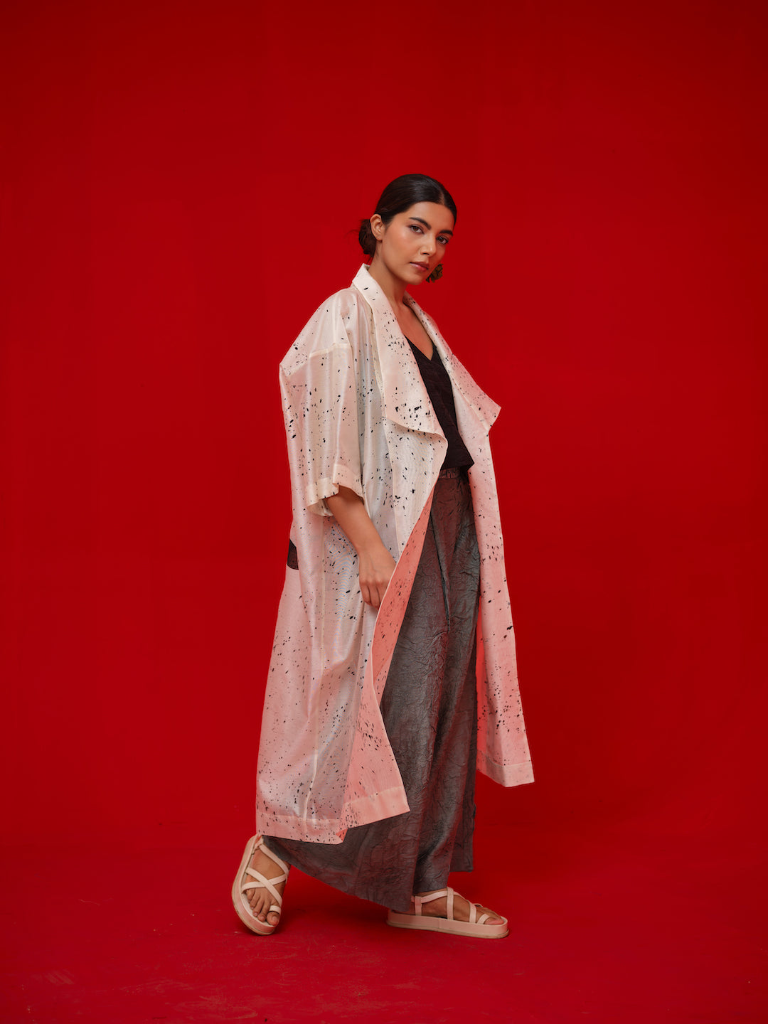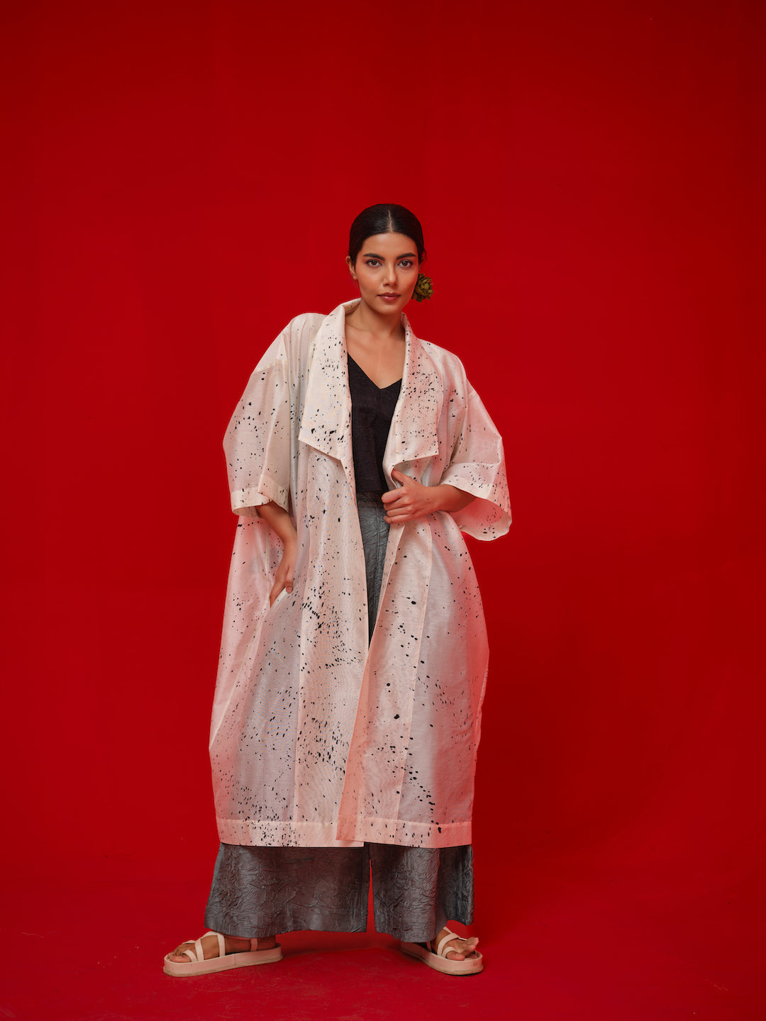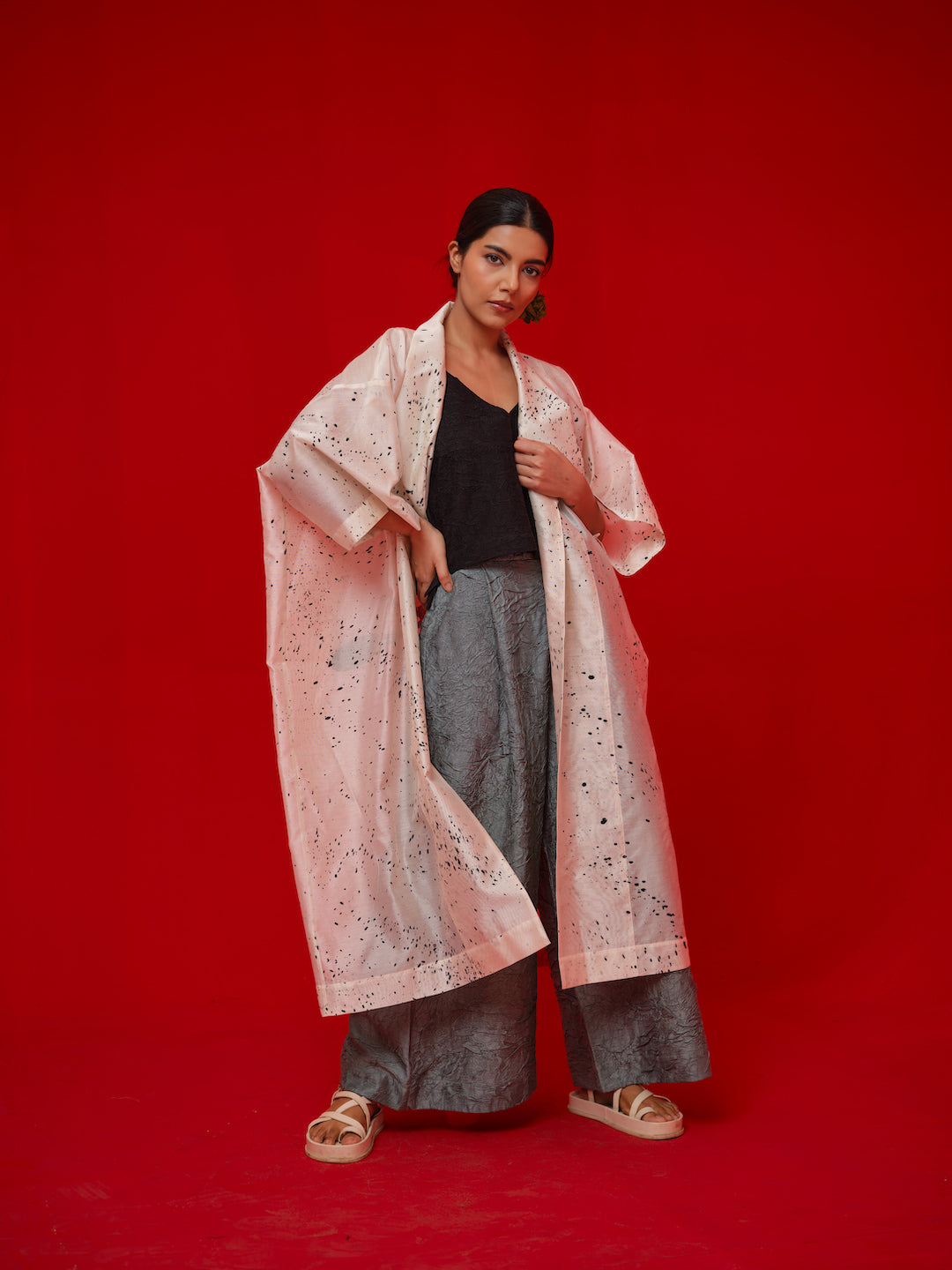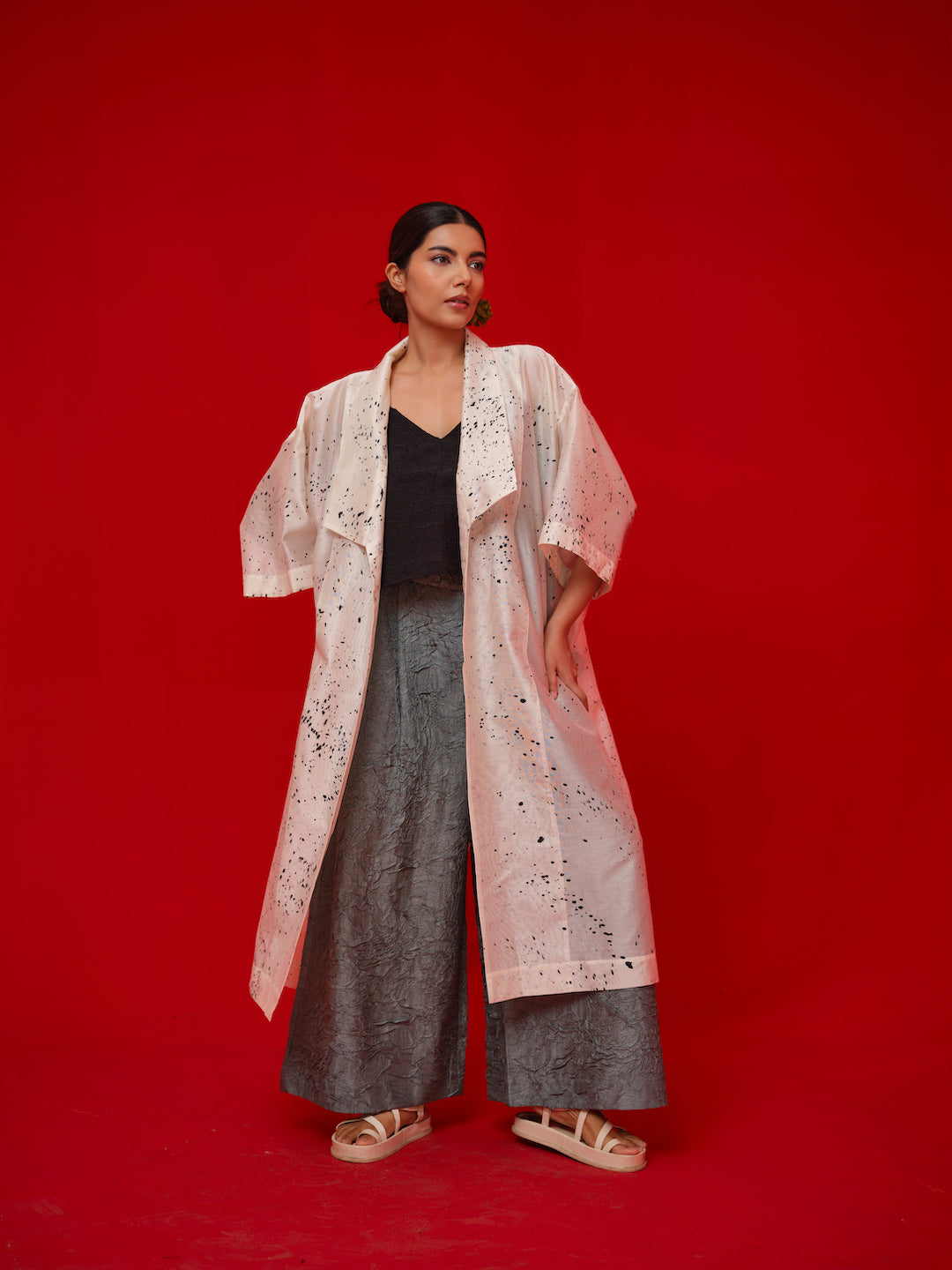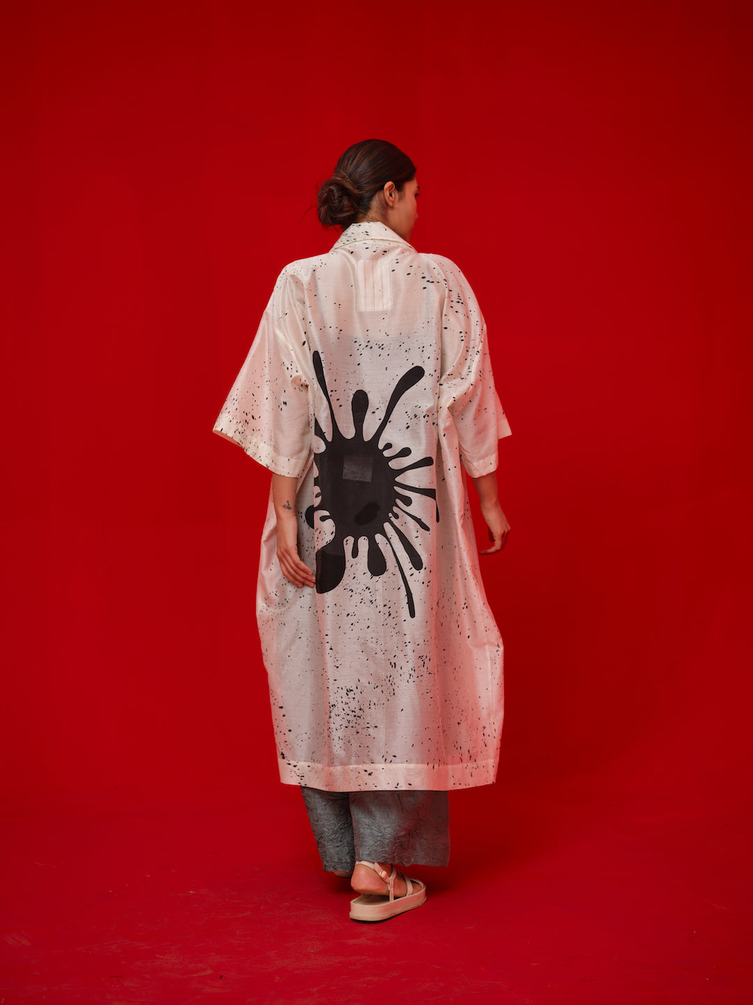 Relaxed, one-size overlay crafted in Chanderi. Handcrafted with unique hand-painted and hand block-printed details for an artisanal finish.