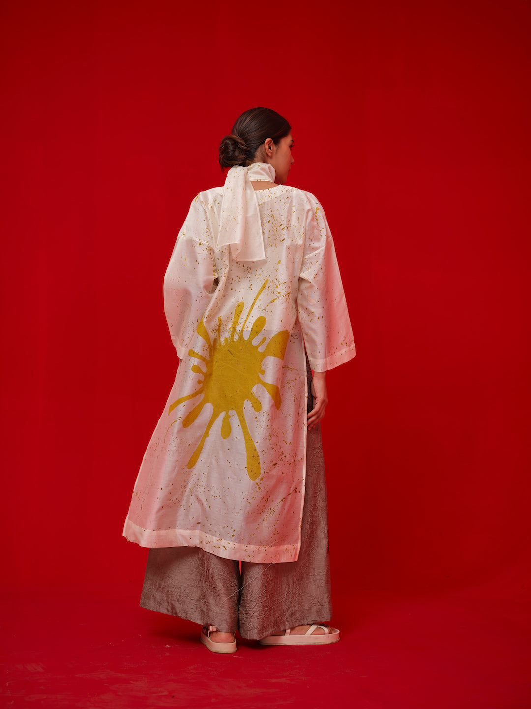 Never wash whites with coloured clothes. All our products are made using natural fabrics and dyed without using chemical binders so colours may run. So, we advise dry cleaning particularly the first few times. If washing never dry them under a direct sun.